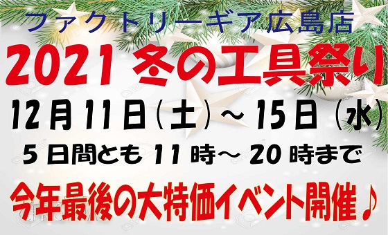こんにちは、ファクトリーギア広島店のキウチです。 12月に入り、あっという間に2021年最後の1ヵ月となりました。 1年の間に色々なことがありますが、なんだかんだあっという間だなーと感じる毎年のこの時期。 いい形で202 […]