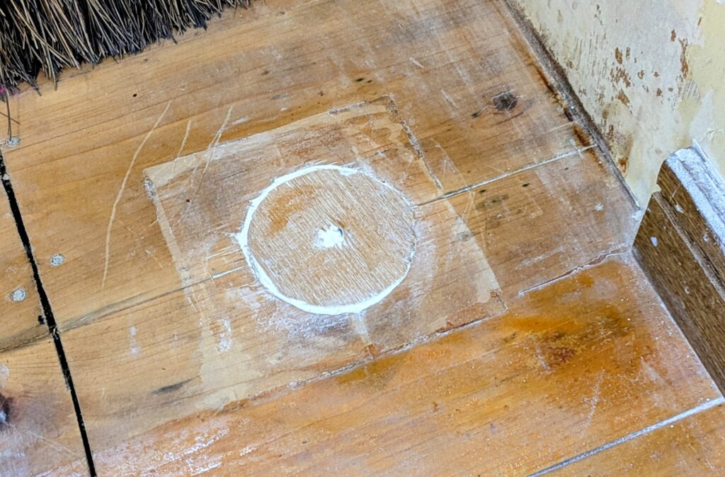 床の至る所に切り込みや穴が有ります。