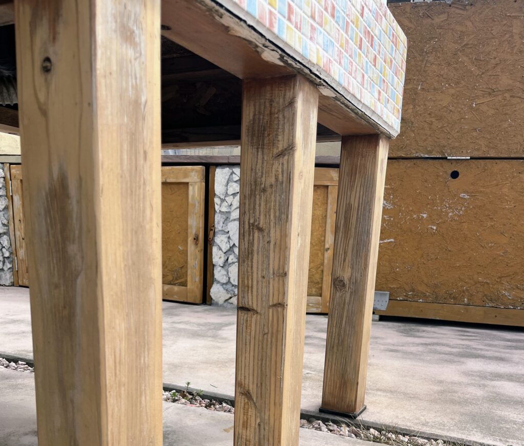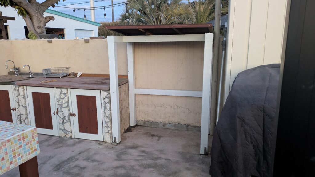 屋根が閉じるパーゴラは常にBSBの主役スペース。海風がぬける為どうしても痛みが激しく汚くなっちゃう。これまで細々と修繕はしてきたけど今回はフルにリニューアルします。