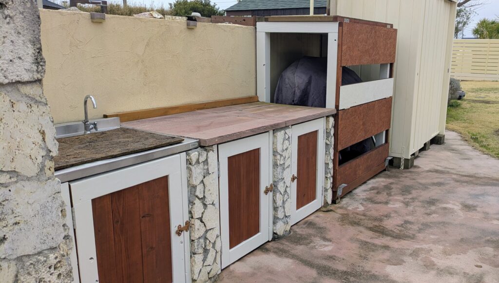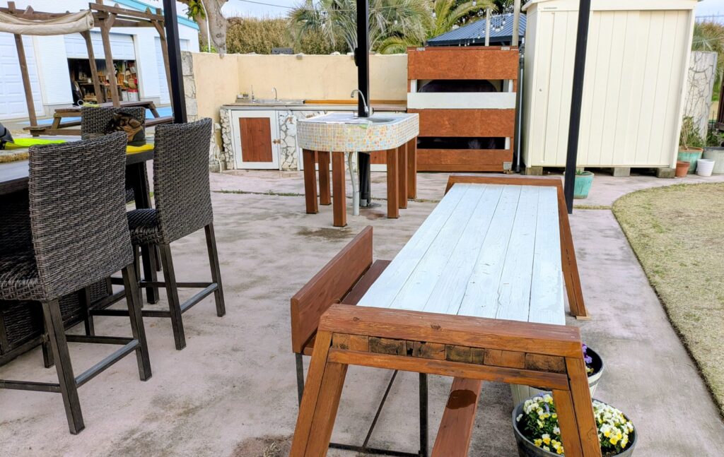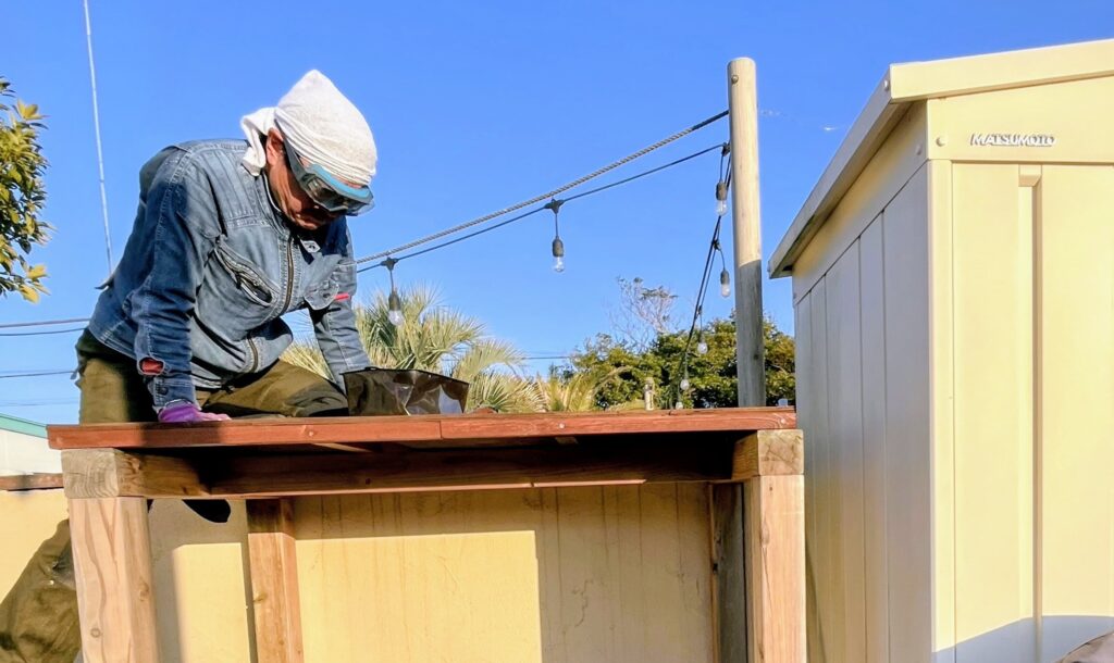 使用頻度の高いパーゴラエリア、BBQを中心に常に人が集まるスペース。やっぱり綺麗じゃないと格好がつかん!ということでリニューアルします。