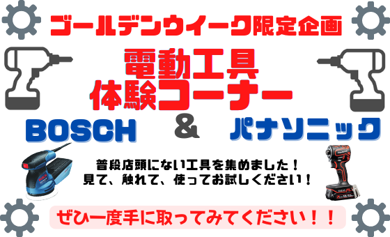 皆さんこんにちは! 2022年のGWはなんば店にてBOSCHとPanasonicの電動工具が体験できちゃいます! BOSCH電動工具 ・GSX18V-210C 2in1コードレスインパクトドライバー コネクト機能を装備し […]