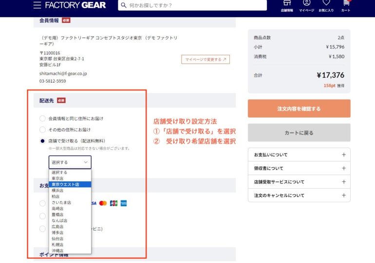 店頭引き取り選択方法