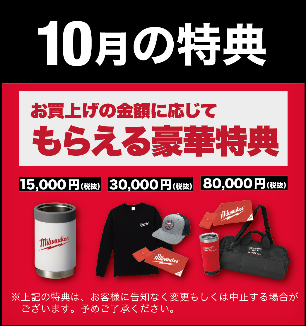 ミルウォーキー製品のご購入金額に応じて、豪華なプレゼントをご用意しています!