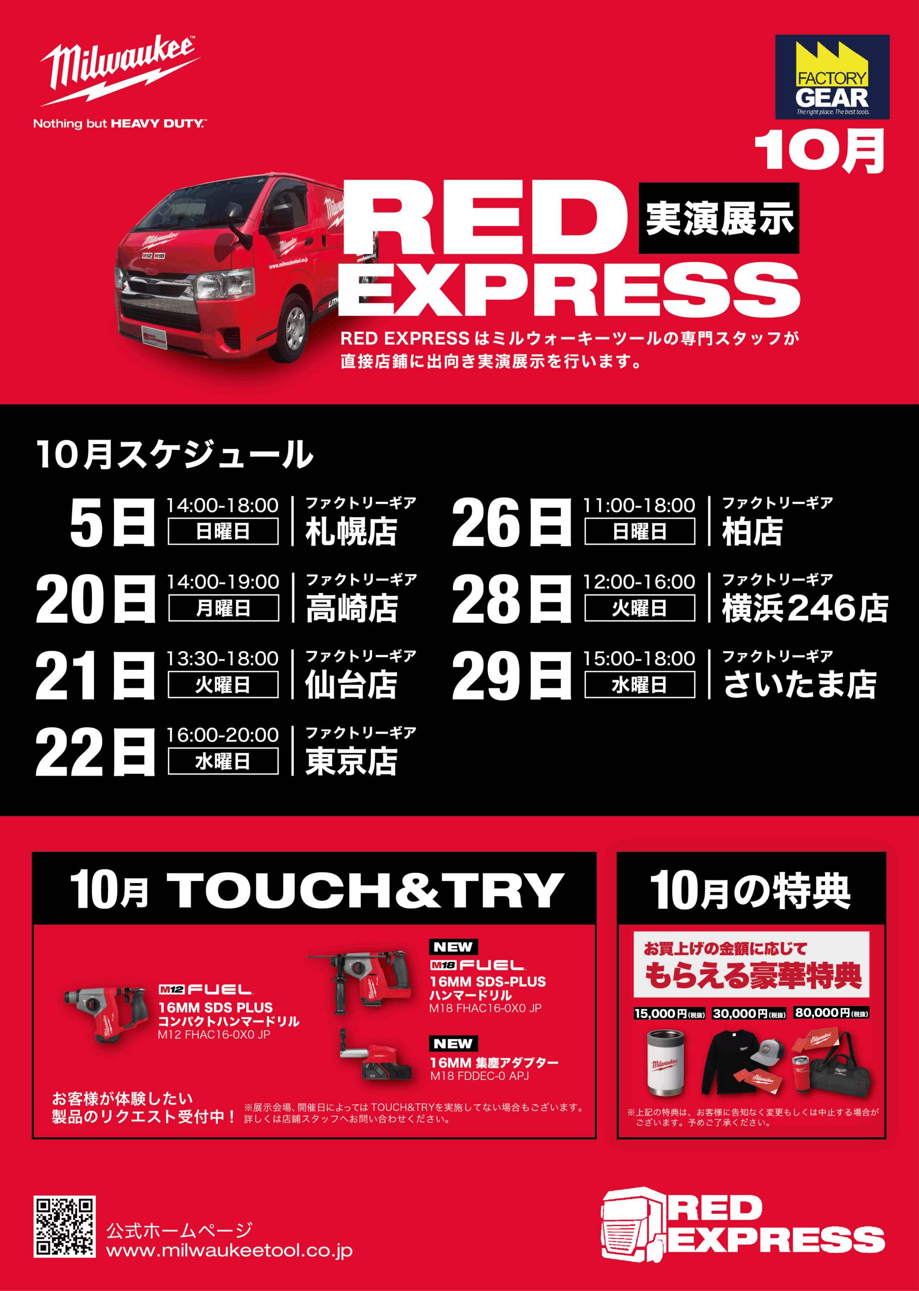 【10月開催】大好評の工具イベント!ミルウォーキー実演展示会が全国のファクトリーギアにやってくる!POSTED BY ファクトリーギア