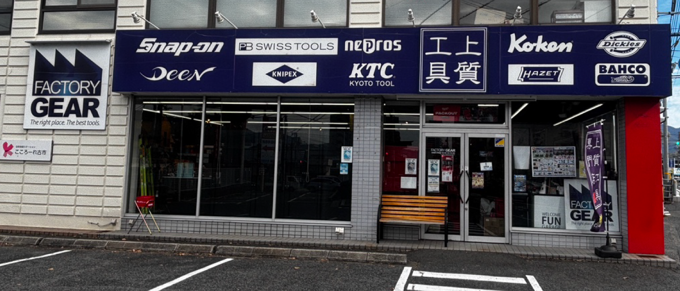 広島店 アクセス 【車でお越しの方】 広島インターより旧54号線へ2分 【電車でお越しの方】 アストラムライン古市駅より徒歩3 店舗詳細 TEL: 082-225-8120 FAX: 082-225-8122 MAIL hiroshima_2@f-gear.co.jp 住所: 〒731−0121 広島県広島市安佐南区中須1丁目4−2 営業時間: 10:00~19:00 木曜・金曜定休 ※定休日が祝日の場合は基本的に営業致します 広島店からのお知らせ 2025年12月19日必ずもらえる”おまけ”がついてくる!「キャビネット&工具セットキャンペーン」2025年12月24日ファクトリーギア各店 年末年始営業&初売りのお知らせ2025年12月17日2026年スタートダッシュ ファクトリーギア新春初売り開催2026年1月1日明けましておめでとうございます ファクトリーギア ニューイヤーセール開催2025年11月7日【11月8日から開催】2025ウィンターバーゲン!2025年9月1日【9/5~10/31】決算セール2025開催!!2025年9月2日大好評の工具イベント!ミルウォーキー実演展示会が全国のファクトリーギアにやってくる!2022年1月8日DEEN Jの新商品が登場!2022年2月7日Happy Valentine’s Day2022年2月9日キーチェーンに最適な充電式フラッシュライト♪2022年3月17日広島店リニューアルオープンキャンペーン2022年3月18日★広島店リニューアルオープンイベント開催★もっと読み込む