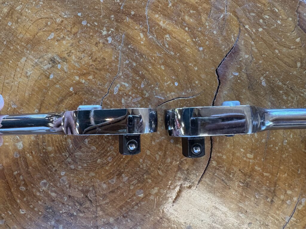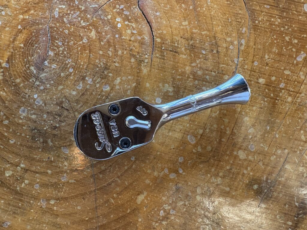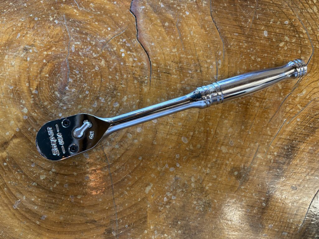 最もベーシックな100ギアラチェット。オールメタルのシャープな見た目と、手に馴染む操作感はSNAP-ONらしさの象徴。F80よりちょっと長めなのもポイントです。