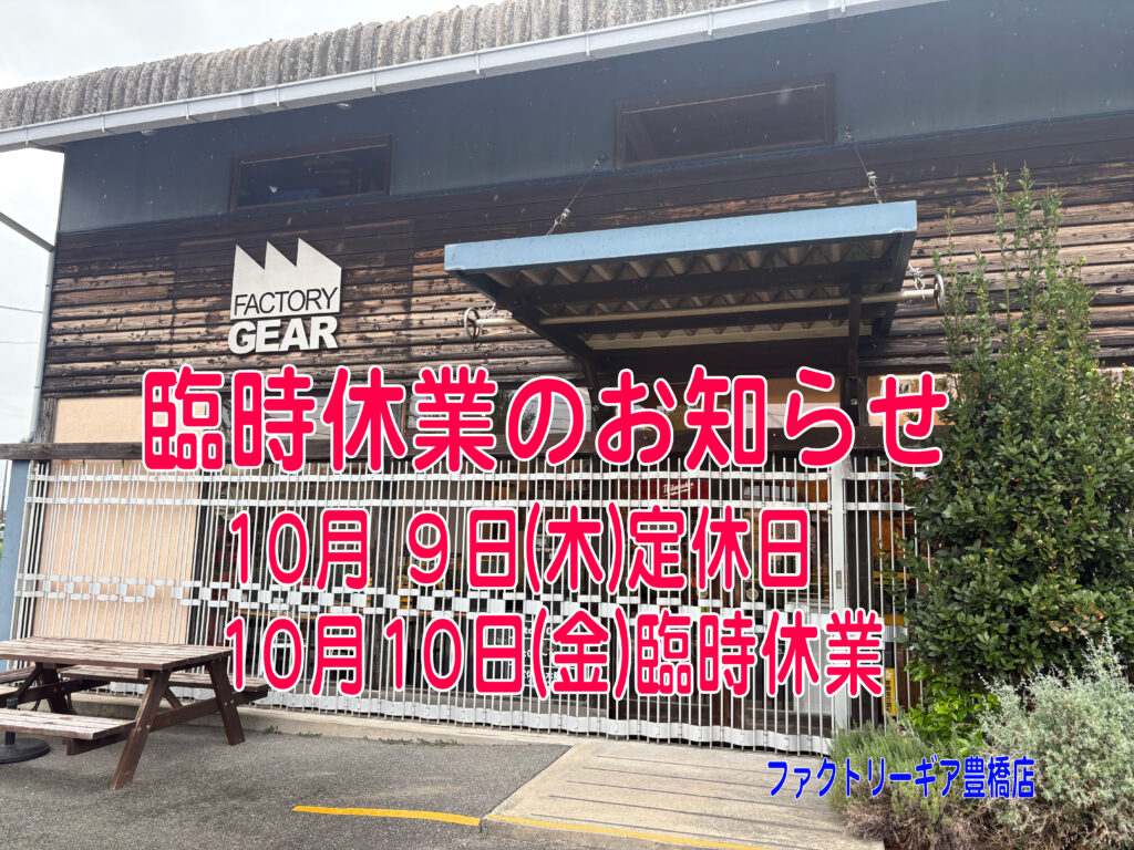 10月10日(金)は豊橋店を含む一部店舗が臨時休業です