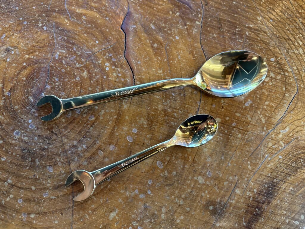 「え、DEENがスプーンとフォーク?」と思うかもしれませんが、工具好きの心をくすぐる細かいデザインと特別なカラーで、まさに25周年にふさわしい記念アイテムに仕上がっています。