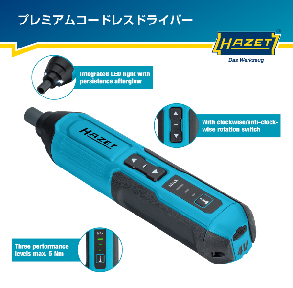 3段階トルク切替(2.5/3.5/5Nm) で用途に対応