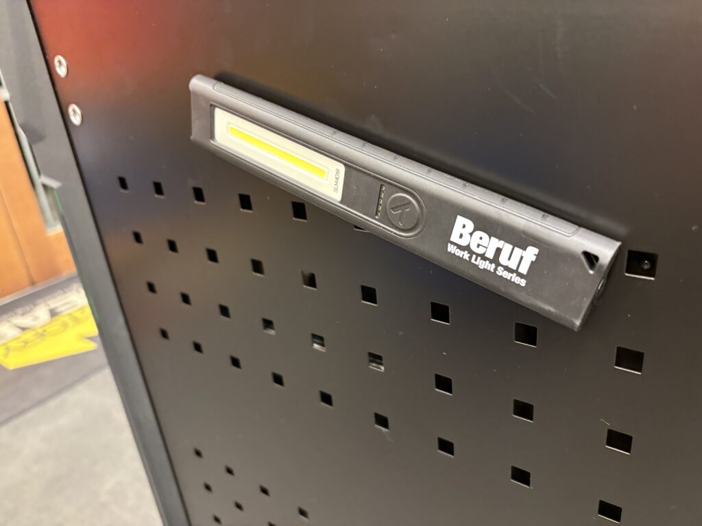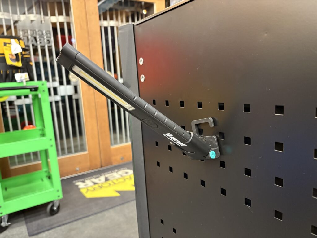工具箱の上に置いても、横に並べても、ライト自体が出っ張らないので作業の邪魔にならないんです。