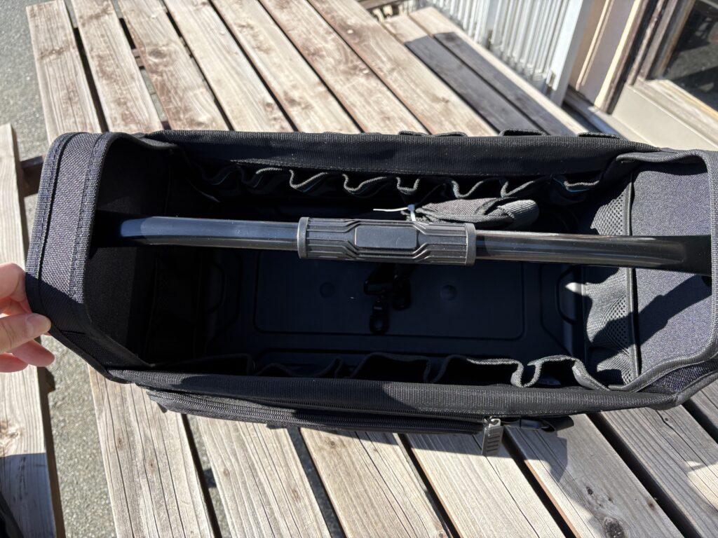普通のツールバッグでは入りづらい長物もしっかり収納できます。