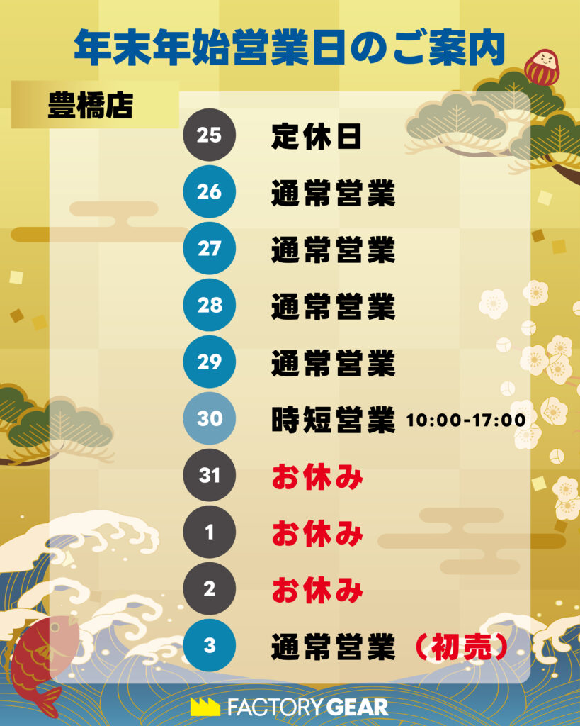 いつもファクトリーギア豊橋店をご利用いただき、本当にありがとうございます。