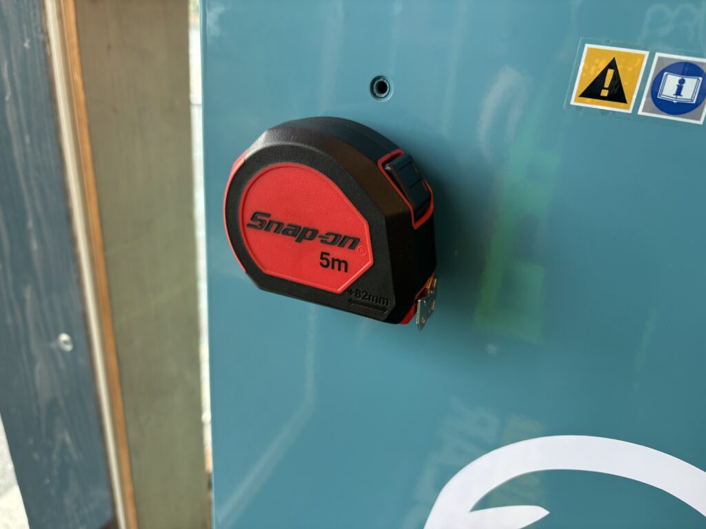 キャビネットや工具箱などスチール面にペタッとつけられる仕様なんです。