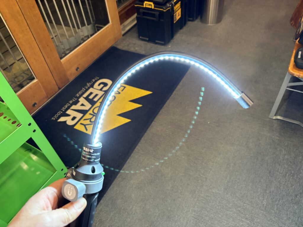 このライトなら、くねっと曲げて照らせます。