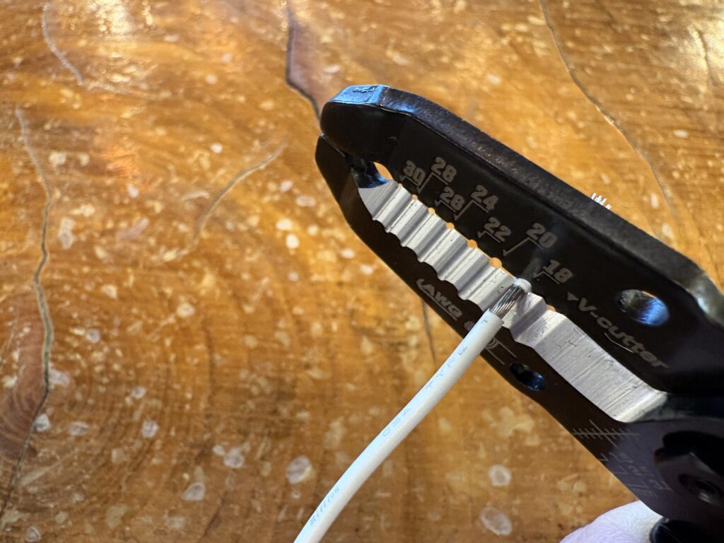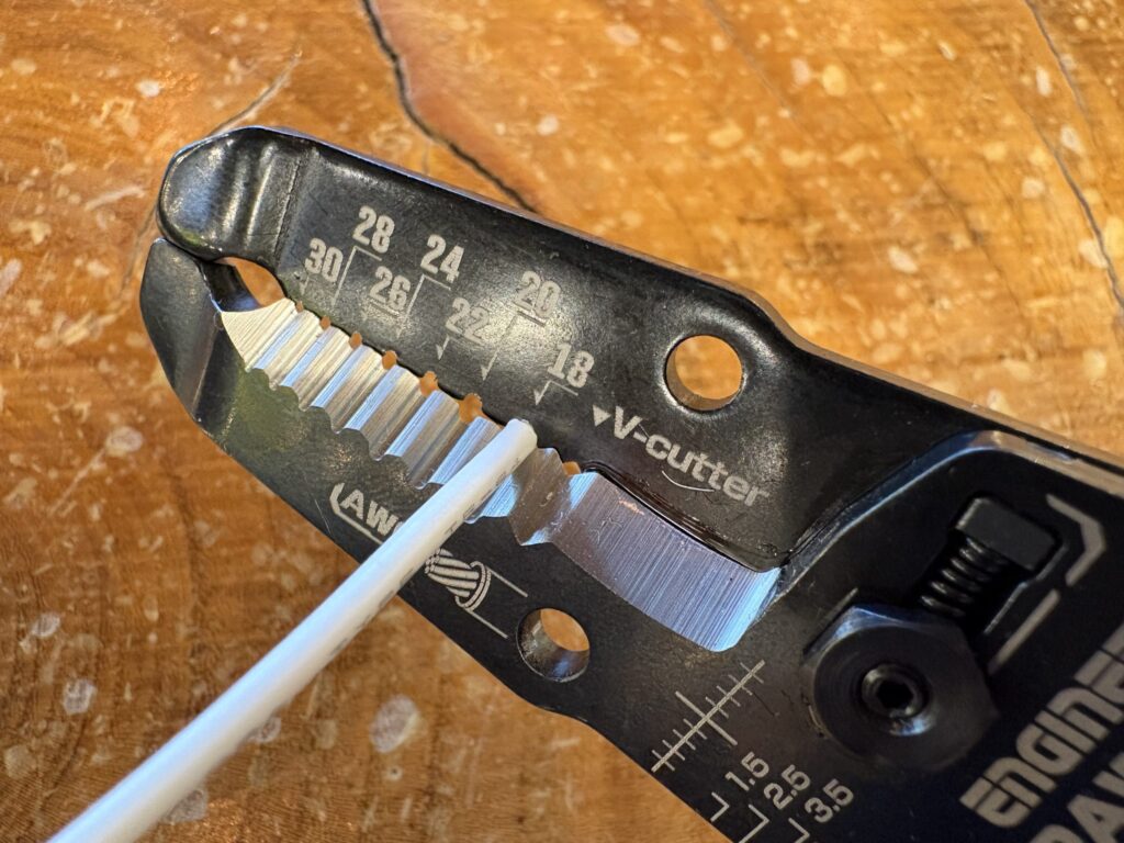 これによって芯線を傷つけにくく、被覆だけをきれいにカットできます。