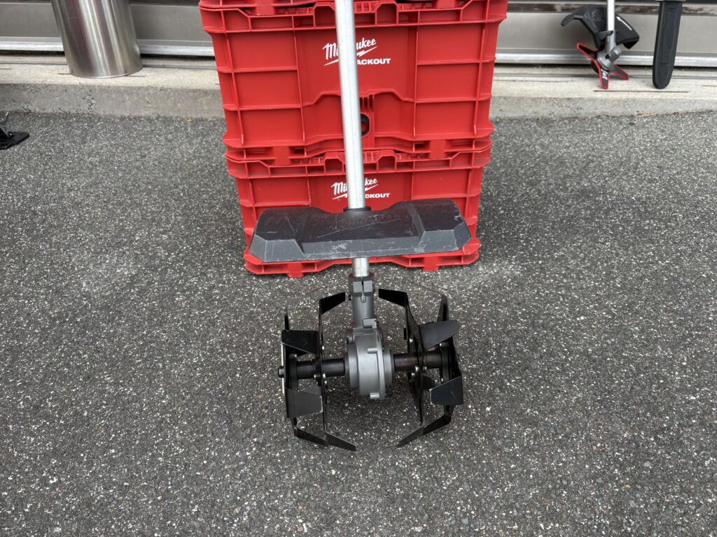 アタッチメントを付け替えると、耕運機として使えます。